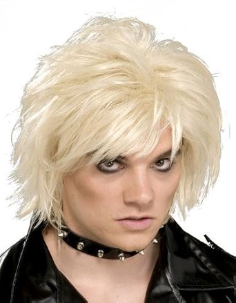 80s Punk Rock Star Costume Mens Blonde Razor Cut Wig Amazon Co Uk