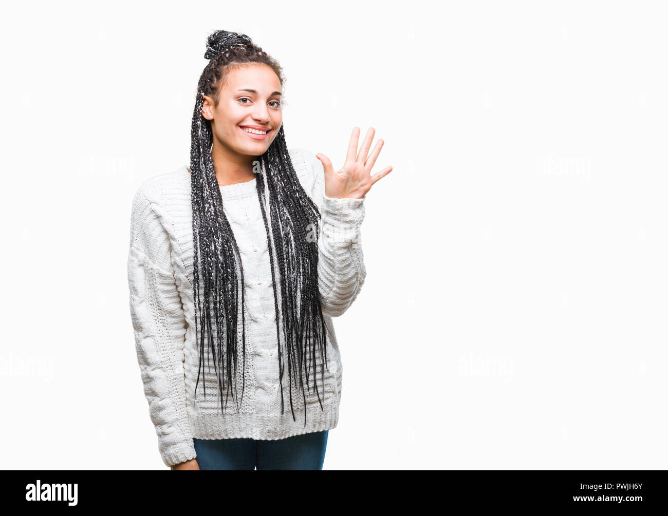 Young Braided Hair African American Girl Wearing Sweater Over Isolated Background Showing And Pointing Up With Fingers Number Five While Smiling Confi Stock Photo 222299475 Alamy