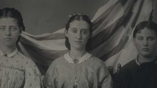 A Group Of Civil War Era Dressed Women Posing For A Portrait Stock