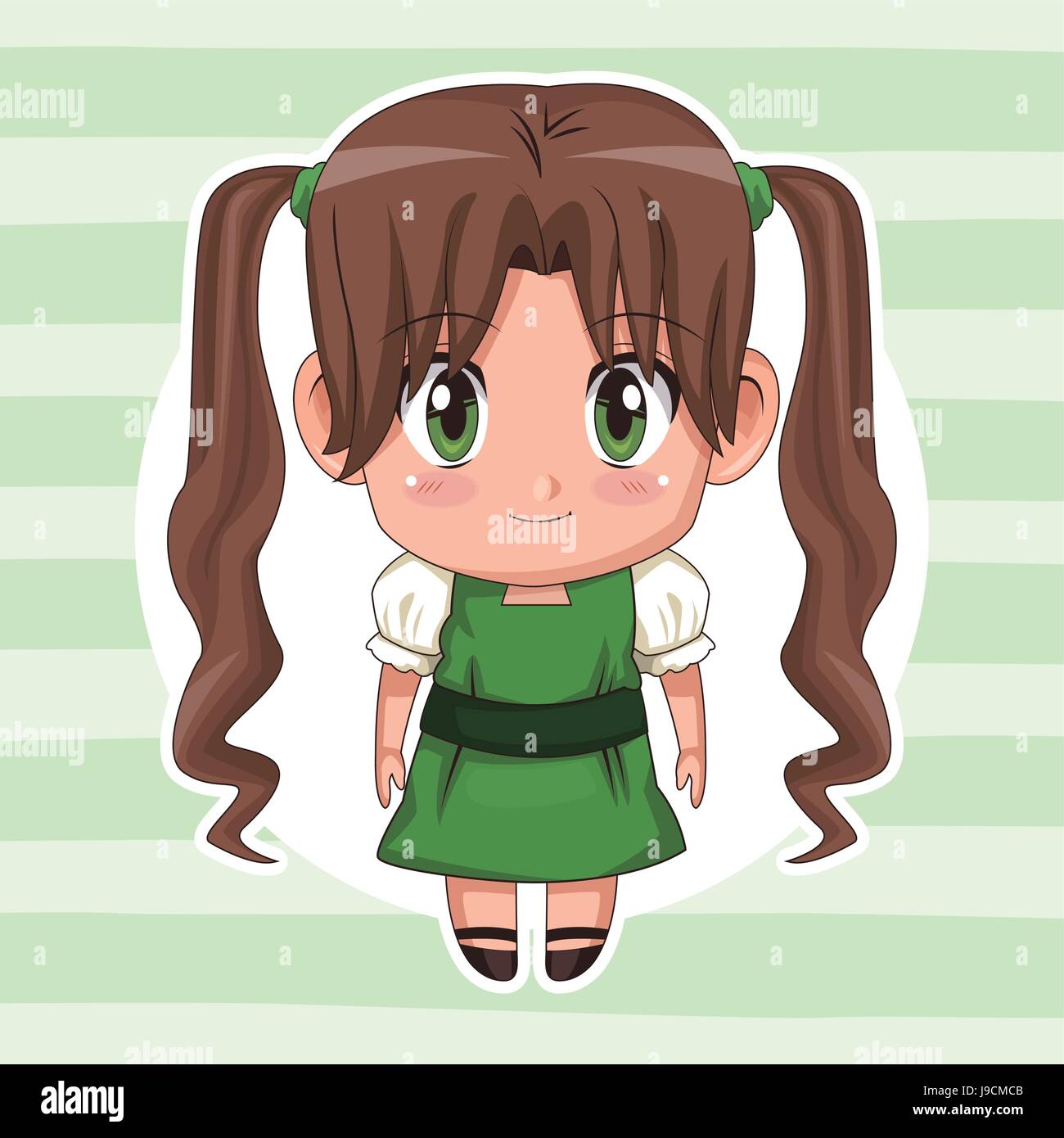 Circular Frame And Cute Anime Girl With Bow Lace In Long Straight