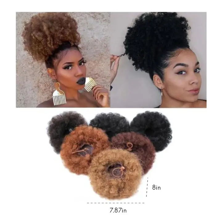 Armmu Afro Kinky Curly Hair Bun Wrap Drawstring High Puff Ponytail