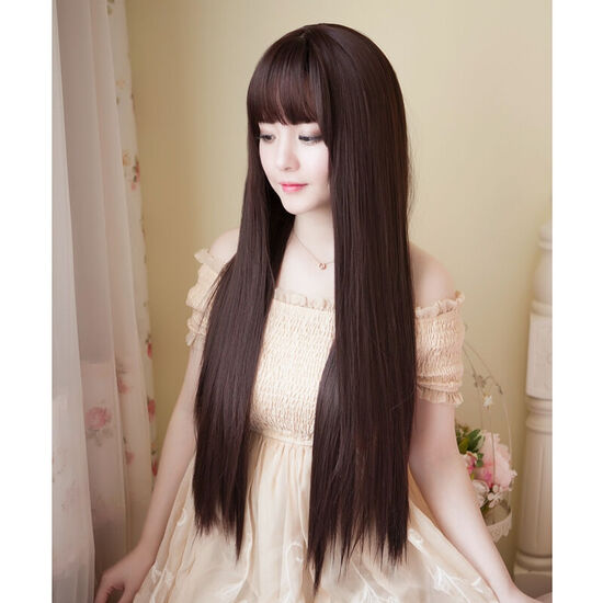 New Korean Fashion Pop Girl Air Bangs Long Straight Hair Wig Full