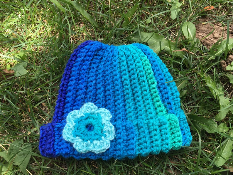Little Girls Crocheted High Hairstyle Hat With Flower Etsy