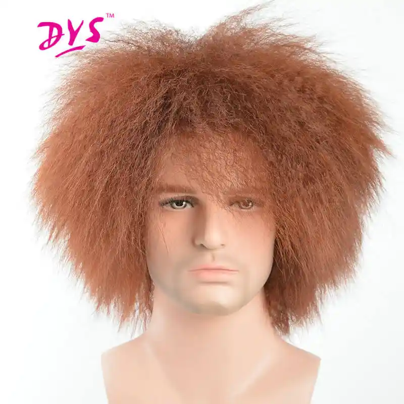 Deyngs Short Kinky Straight Synthetic Men S Wigs Natural Black