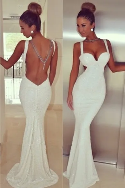Bling Sexy Sequins Sweetheart Sheath Prom Dress Open Back Long