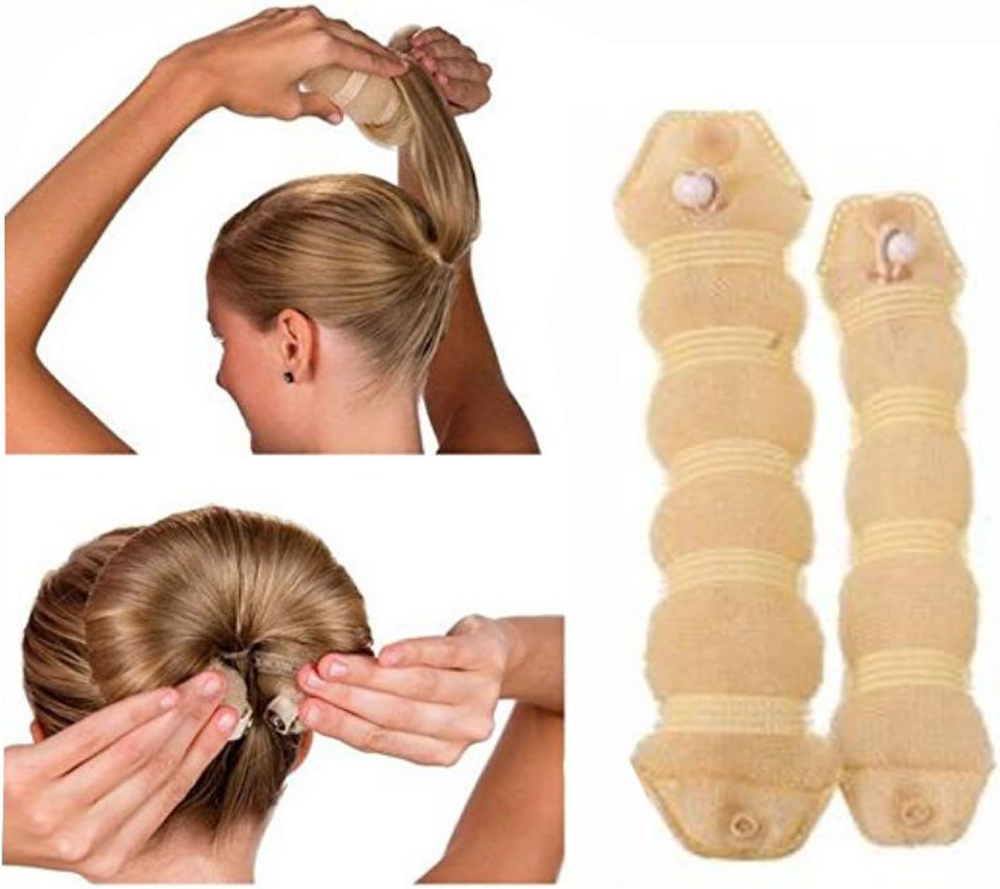 2pcs 1large 1 Small Beige Magic Hair Donut Bun Maker Hair Ring