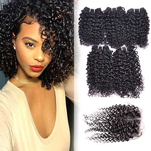 Kinky Curly Huma Hair 5 Bundles Hair With 4x4closure Natural Black
