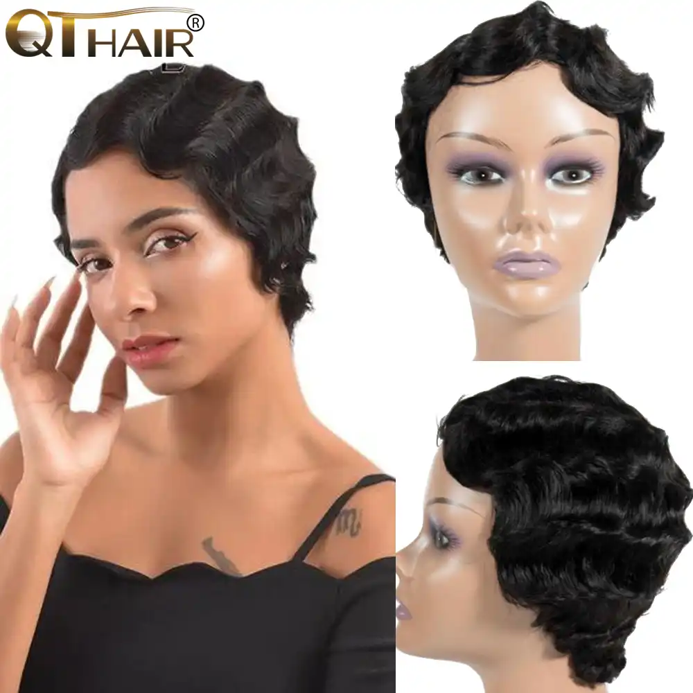 Qt Hair Short Ocean Wave Bob Wigs For Woman Short Finger Wave Wigs